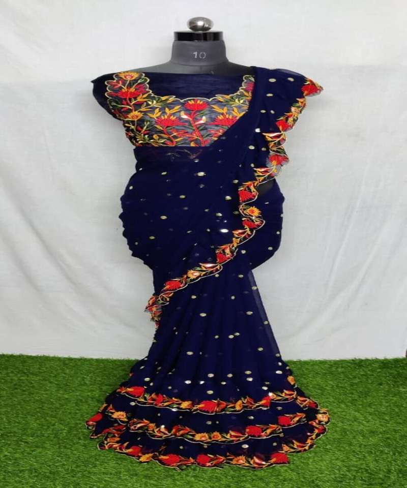 Tipo::Desgaste de fiesta secuencia bordado Saree