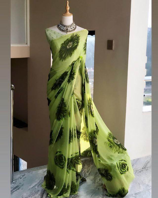 Sari Moderno de Georgette para Fiestas, Bodas, Diwalis, Graduaciones - Producto de Moda