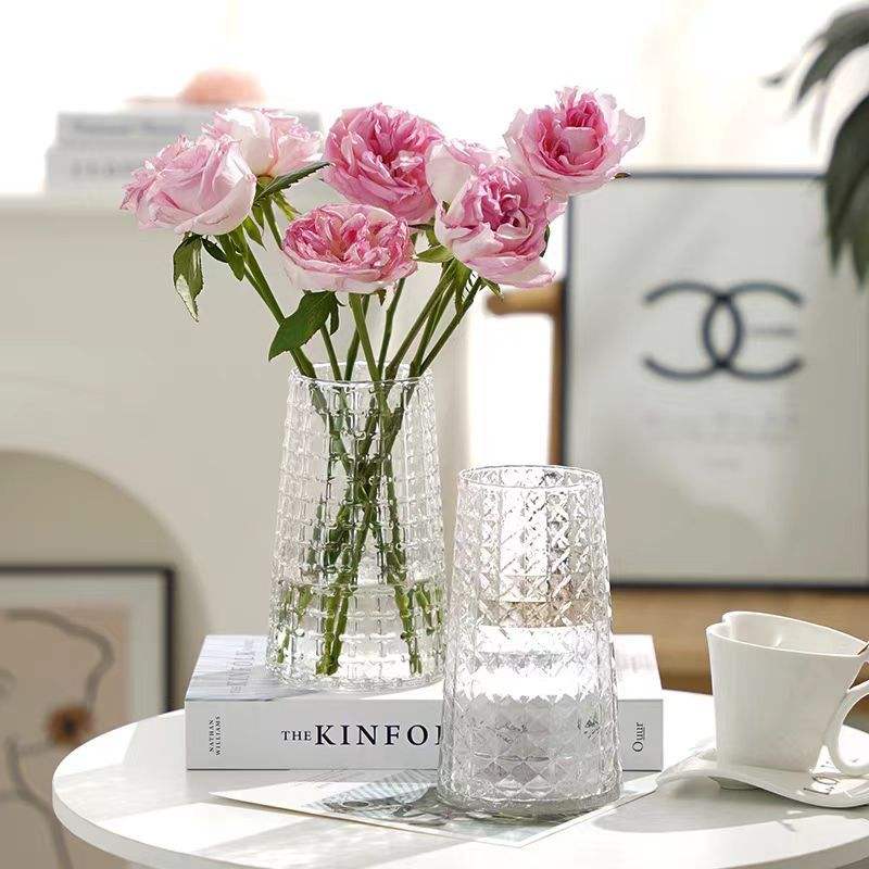 Florero de cristal transparente grande de 10x25cm, estilo clásico de diseño Ins para decoración del hogar, arreglos florales hechos a mano, ocasiones de boda