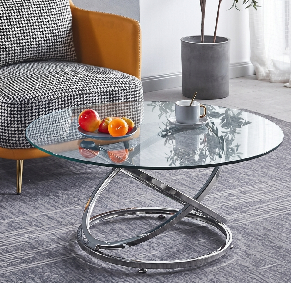 Juego de Mesa de Centro de Vidrio Moderno y Lujoso con Marco Curvo de Acero Inoxidable, Mesa Central Ovalada y Mesas Auxiliares a Juego