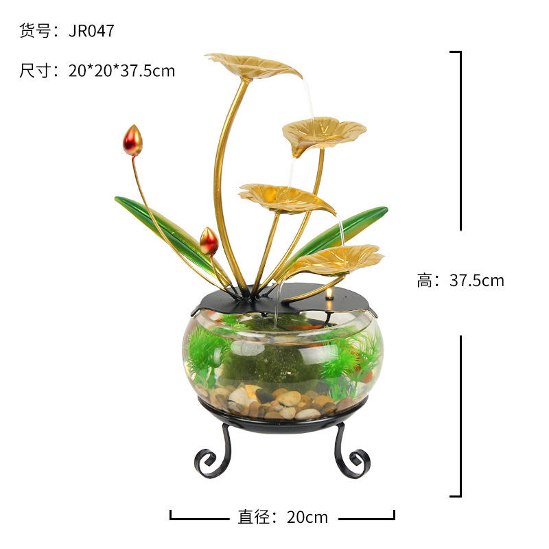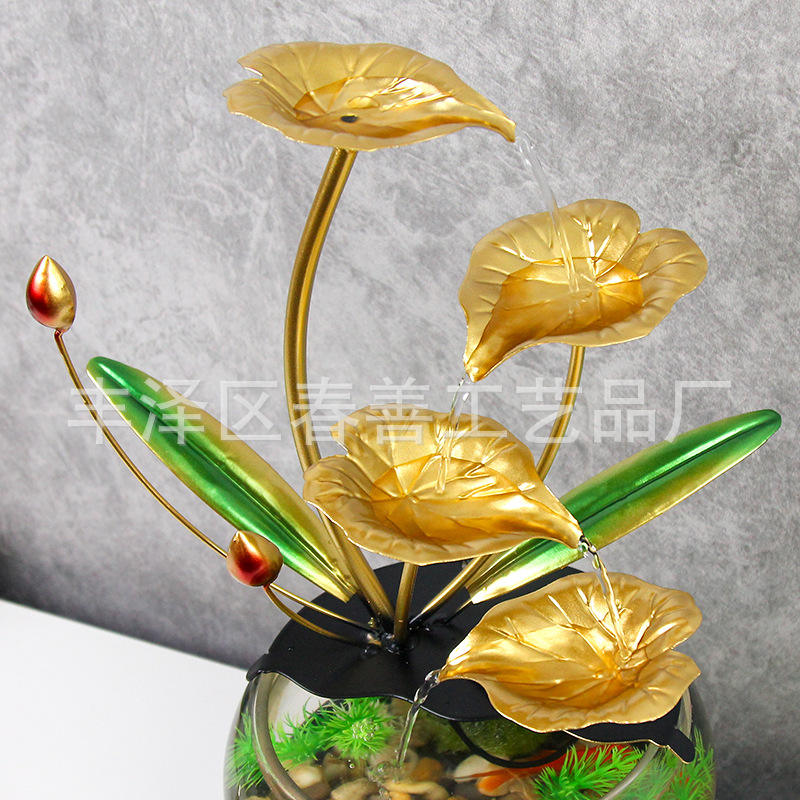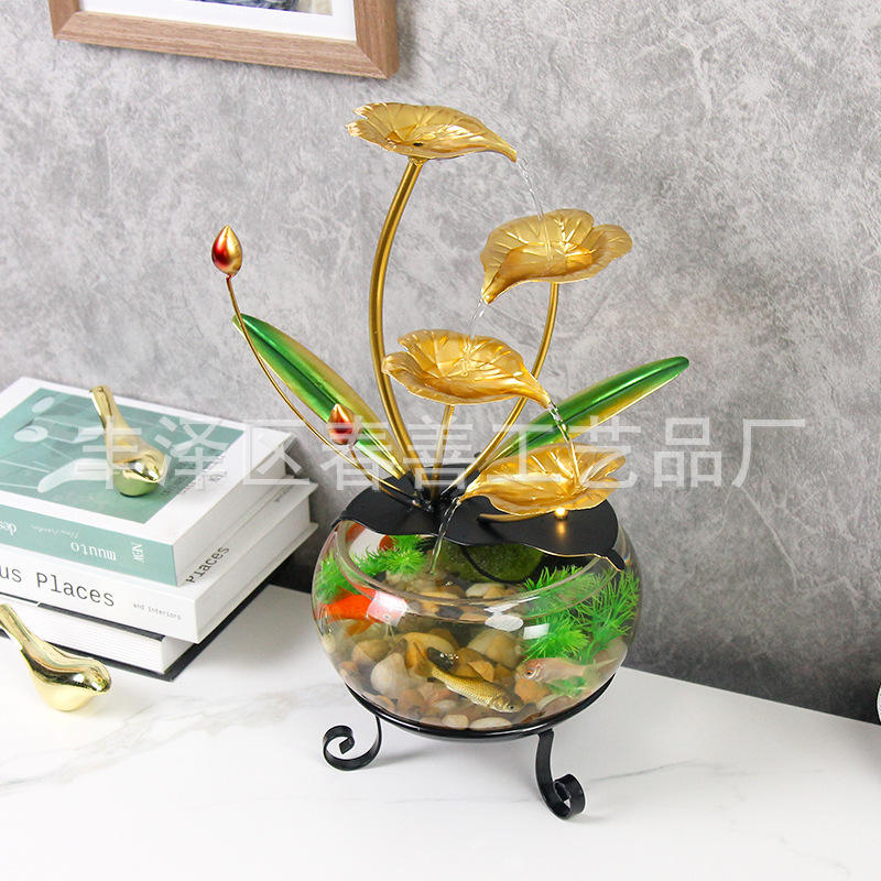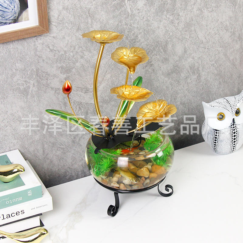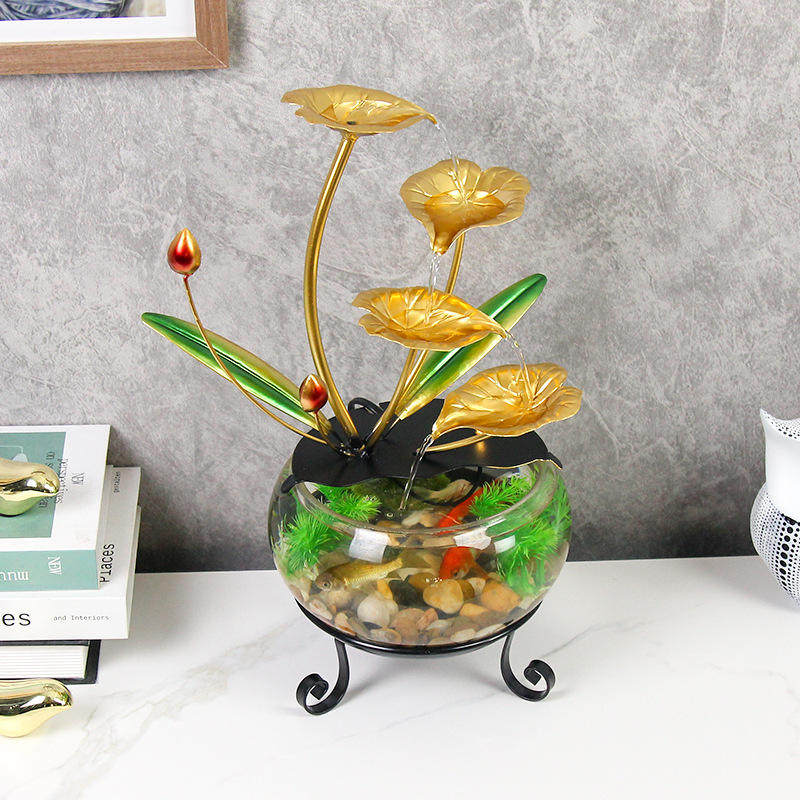 Moderna Pecera de Vidrio con Diseño de Loto Dorado para Decoración de Escritorio en Hogar u Oficina
