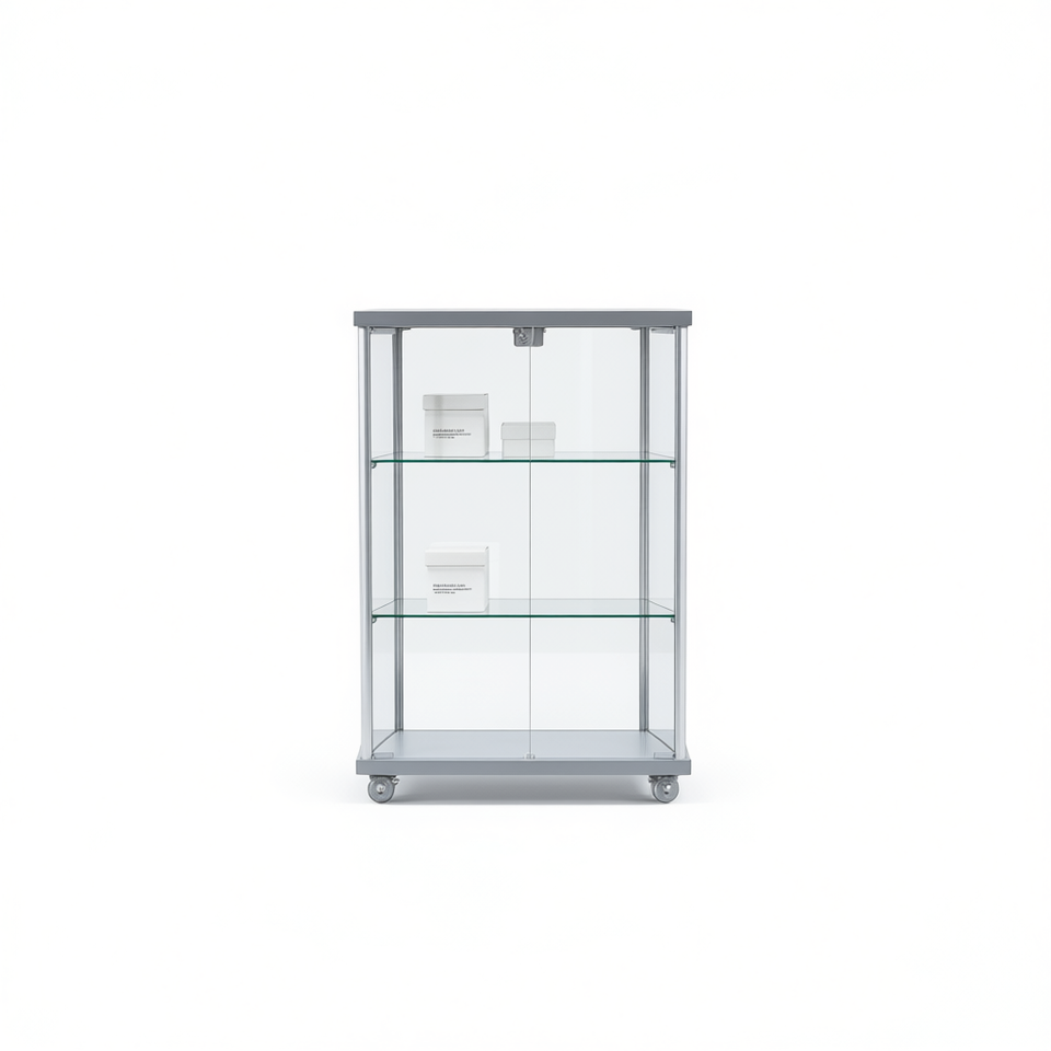 Vitrina Moderna de Vidrio con Marco de Aluminio 75x39x95 cm, Color Gris Claro, Puerta con Cerradura, Estantes Ajustables