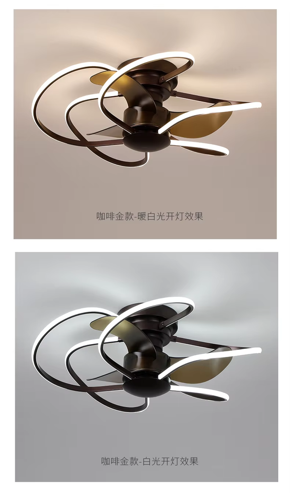 Ventilador de Techo LED Moderno con Motor BLDC de 6 Velocidades, Control Remoto, 5 Aspas, Cuerpo de Lámpara de Plástico, Regulable, para Uso en Exteriores y Hoteles, Ahorro de Energía