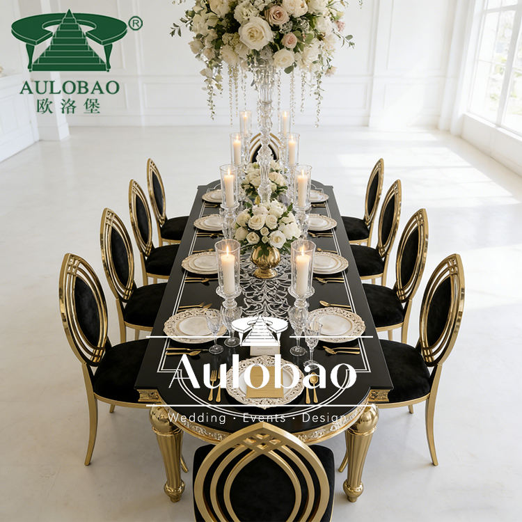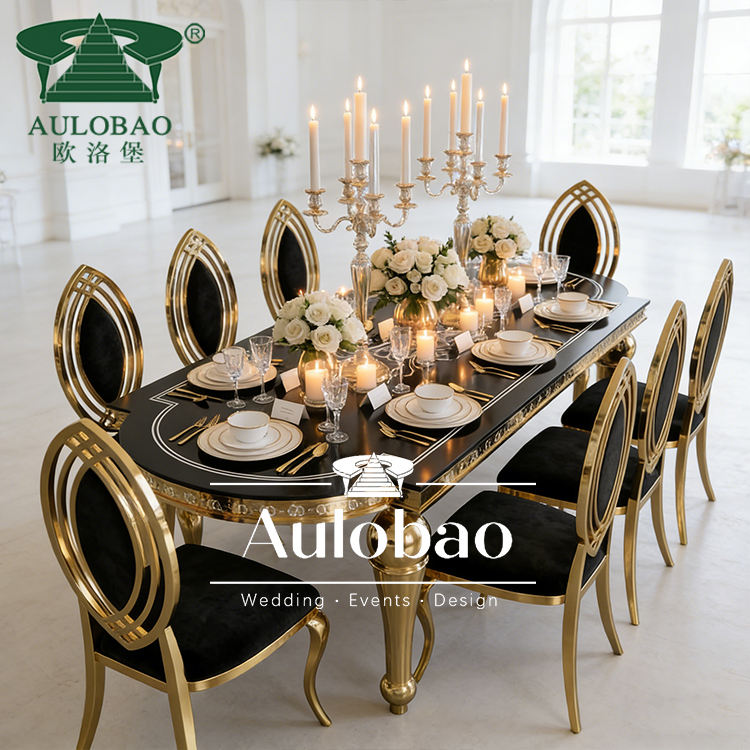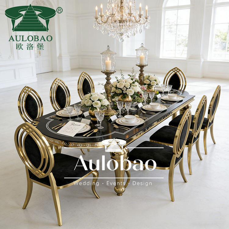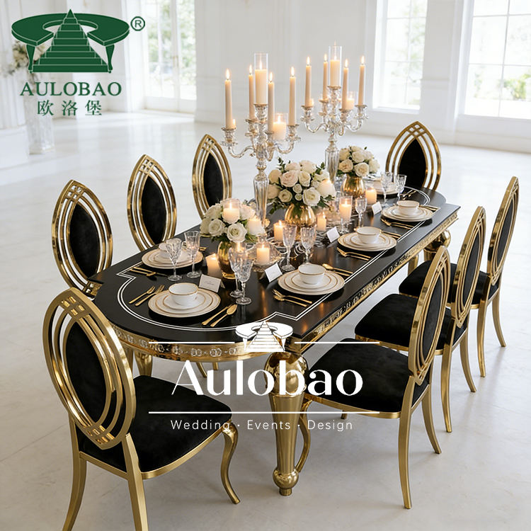 Mesa de Comedor Moderna de Acero Inoxidable con Diseño Dorado para Hotel, Bodas, Eventos y Sala de Estar