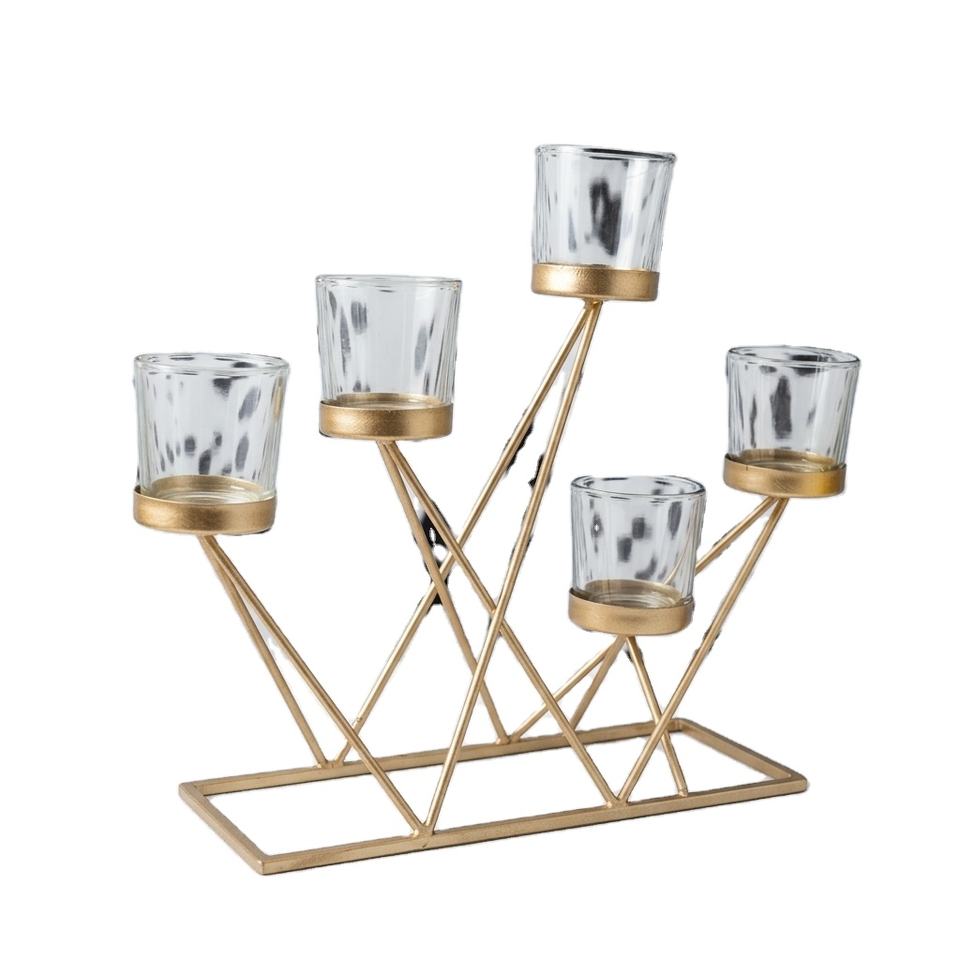 Candelabro Moderno de Metal Dorado con Diseño Geométrico, Estilo Nórdico, para 5 Velas Votivas, Centro de Mesa para Bodas, Decoración del Hogar