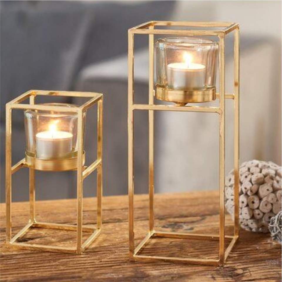 Juego de Portavelas Geométricos Modernos de Metal Dorado, Portavelas de Lujo para Centro de Mesa de Boda, Decoración para Mesa de Boda