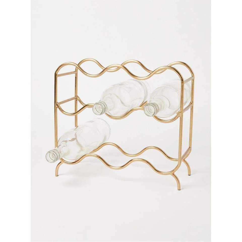 Moderno Porta Vinos de Metal Dorado para 6 Botellas, Soporte Geométrico Apilable para Mostrador, Exhibidor de Vino para Decoración del Hogar o Bar