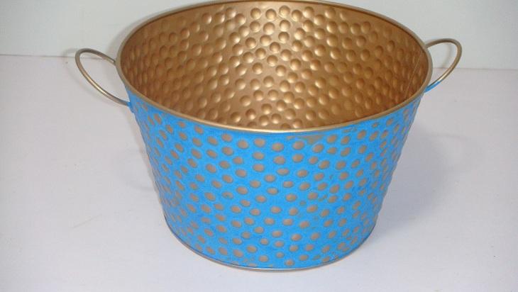 Maceta Moderna de Metal Dorado y Azul con Relieve - Diseño de Hoja de Monstera, Maceta Decorativa para Plantas de Interior, Decoración del Hogar y Jardín