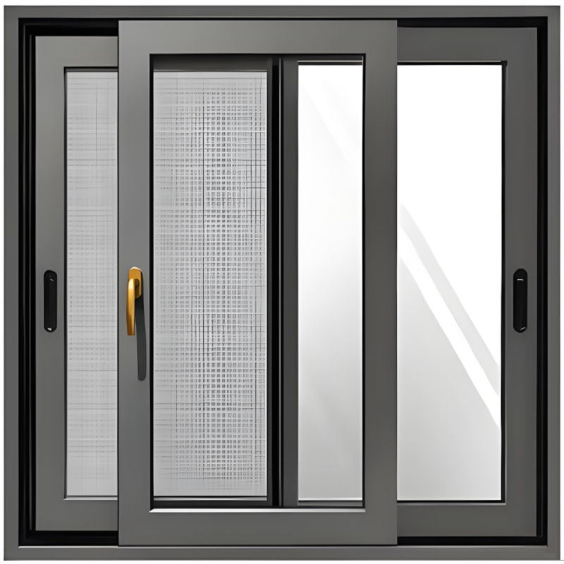 Ventanas Corredizas Modernas con Marco de Aleación de Aluminio con Recubrimiento en Polvo Gris Horizontal, Persianas Magnéticas de Acero Inoxidable, Insonorizadas y Reflectantes