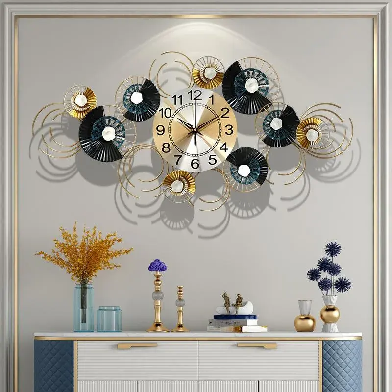 Reloj de Pared Moderno de Metal Gris y Dorado para Regalo de Boda, Decoración de Pared de Metal de Diseño Grande para Sala de Estar, Dormitorio y Oficina