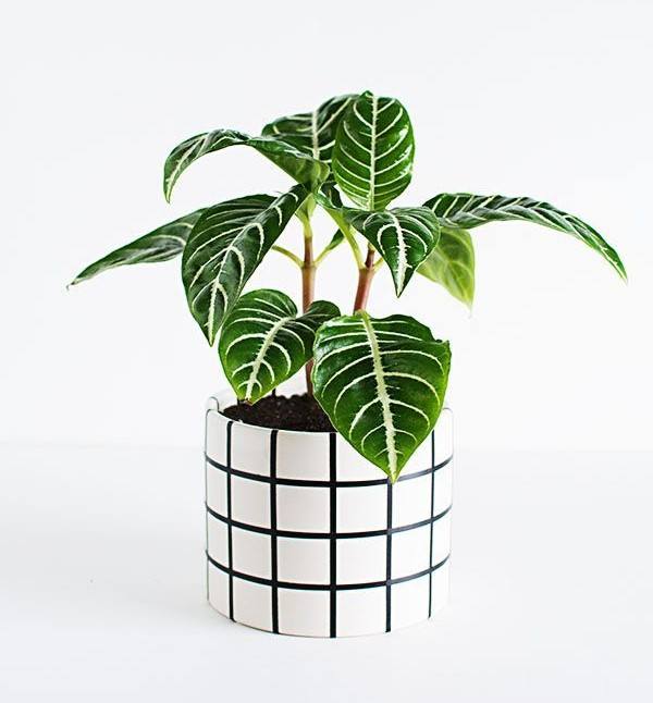 Maceta de Cerámica Moderna con Diseño de Cuadrícula, con Orificio de Drenaje, Esmalte Duradero, Elegante Soporte para Plantas de Interior