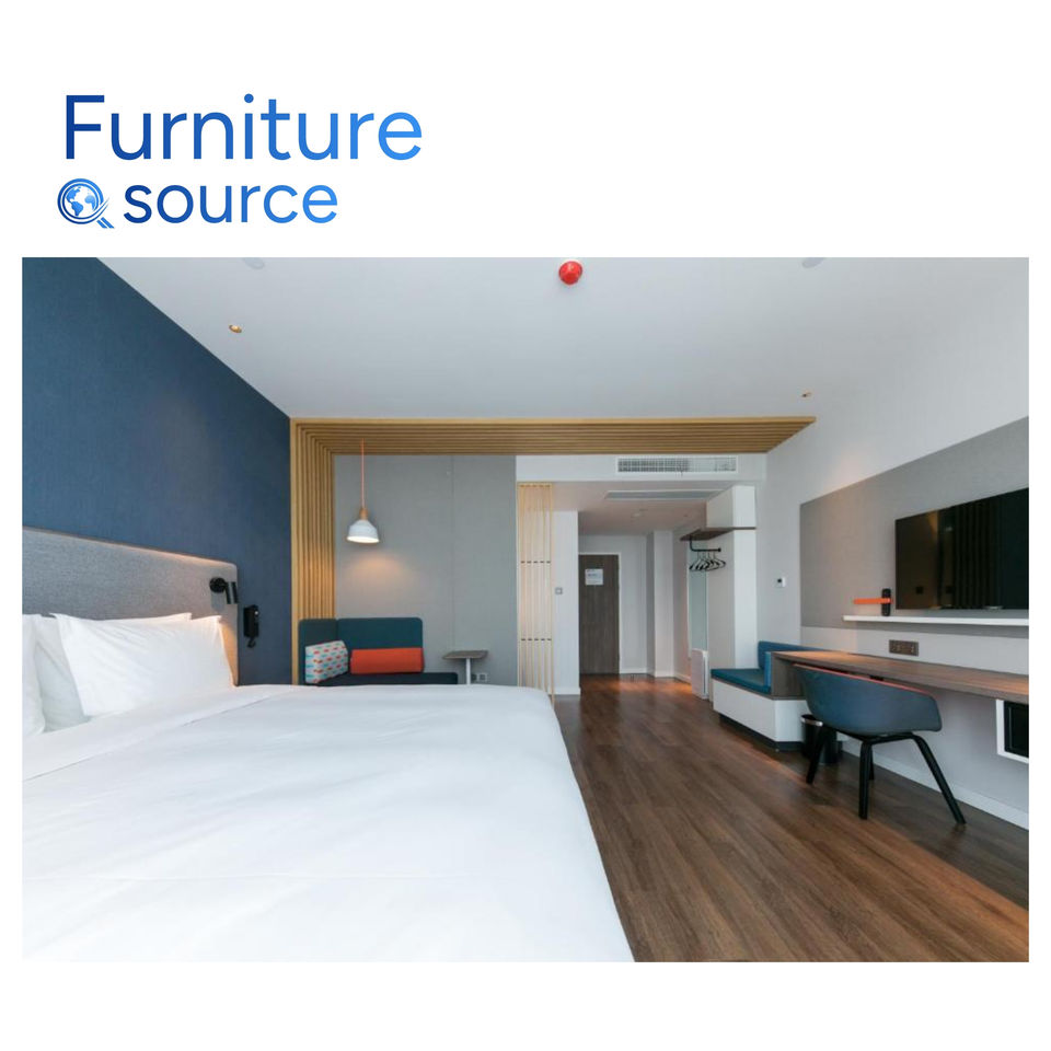 Muebles de hotel de diseño moderno para habitaciones, MDF de primera calidad, chapa de HPL para dormitorio de Holiday Inn, fabricado por Vietnam Factory