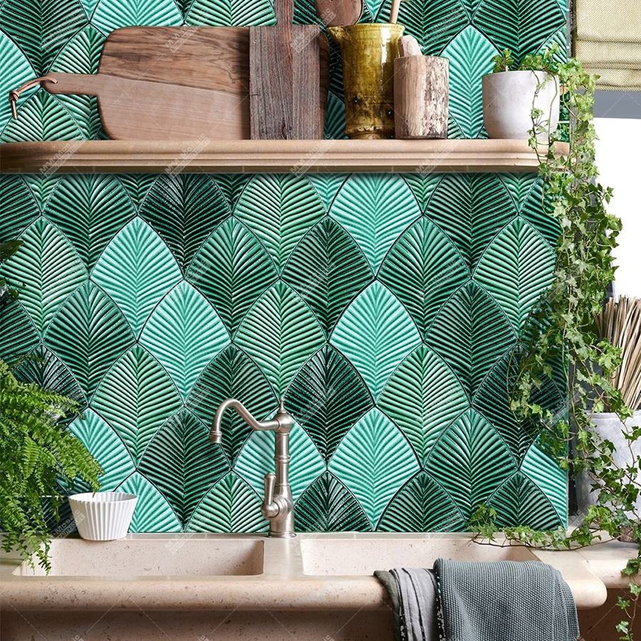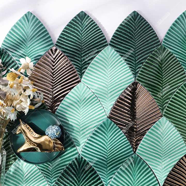Punto de venta:3D crackle forma de hoja azulejos hechos a mano