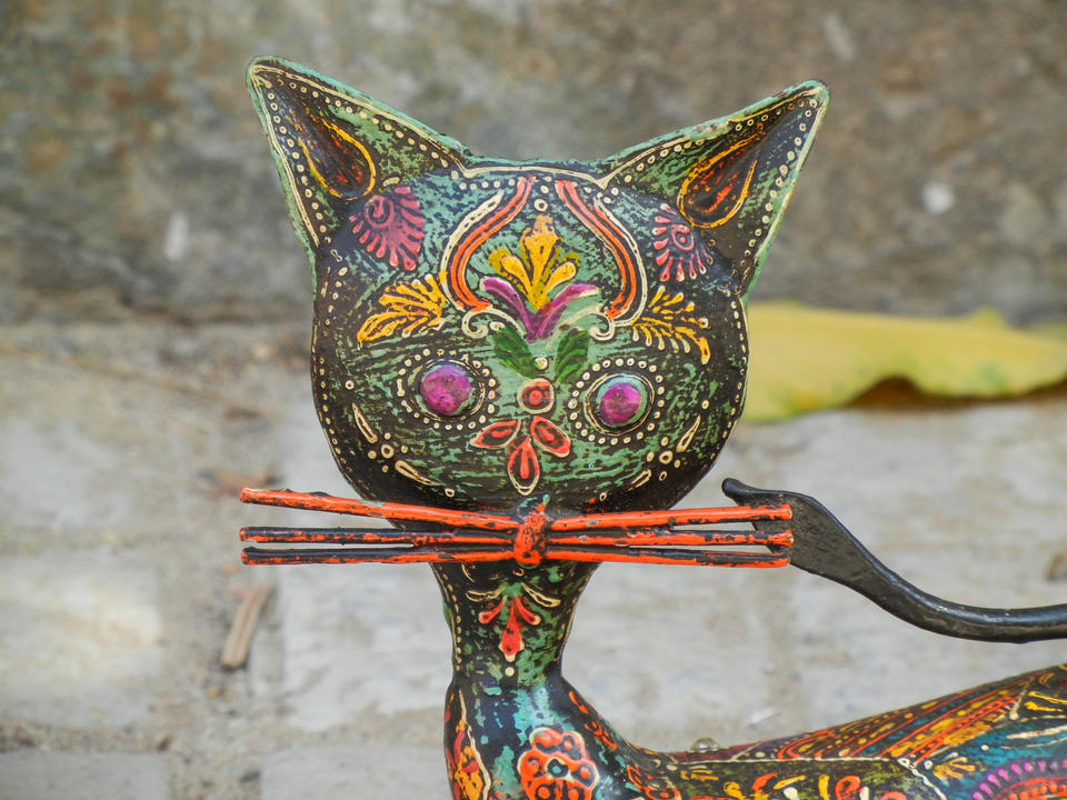 Product name:Wooden & Metal Cat Figurine Statue