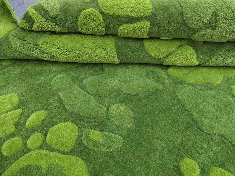 Nombre del Producto:Alfombra texturizada abstracta verde| Alfombra Moderna Tejida a Mano