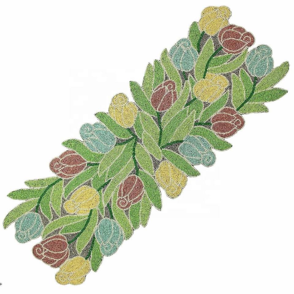 Moderna Caminata de Mesa Duradera de Poliéster con Cuentas de Cristal Doradas Hechas a Mano, Decorativa y Elegante para Hogar, Hotel, Comedor, Bodas y Fiestas