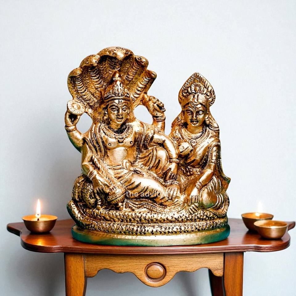 Dios hindú moderno hecho a mano Vishnu y Diosa Lakshmi Brass Idol Showpiece hecho a mano para decoración del hogar y artículo de regalo de Diwali