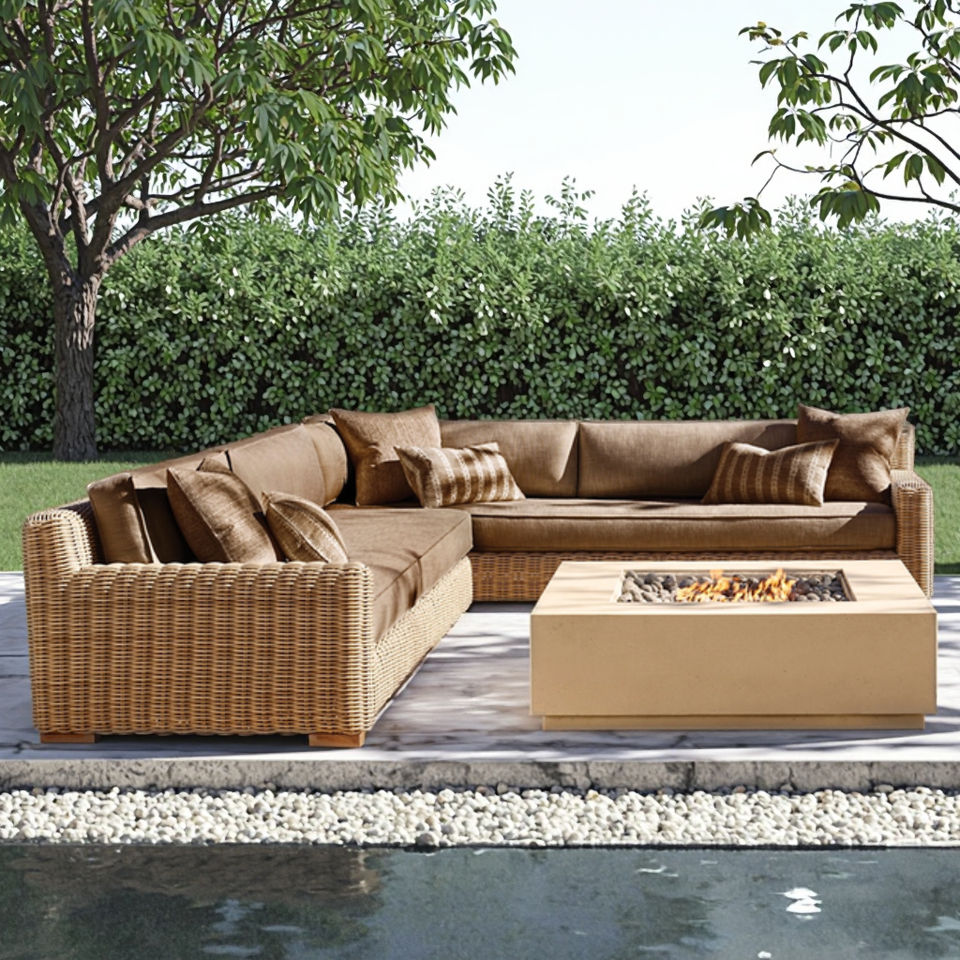 Moderno Conjunto de Sofás de Ratán de Lujo Hechos a Mano para Exteriores y Sofá de Mimbre para Exteriores con Curvas Elegantes y Resistente a la Intemperie