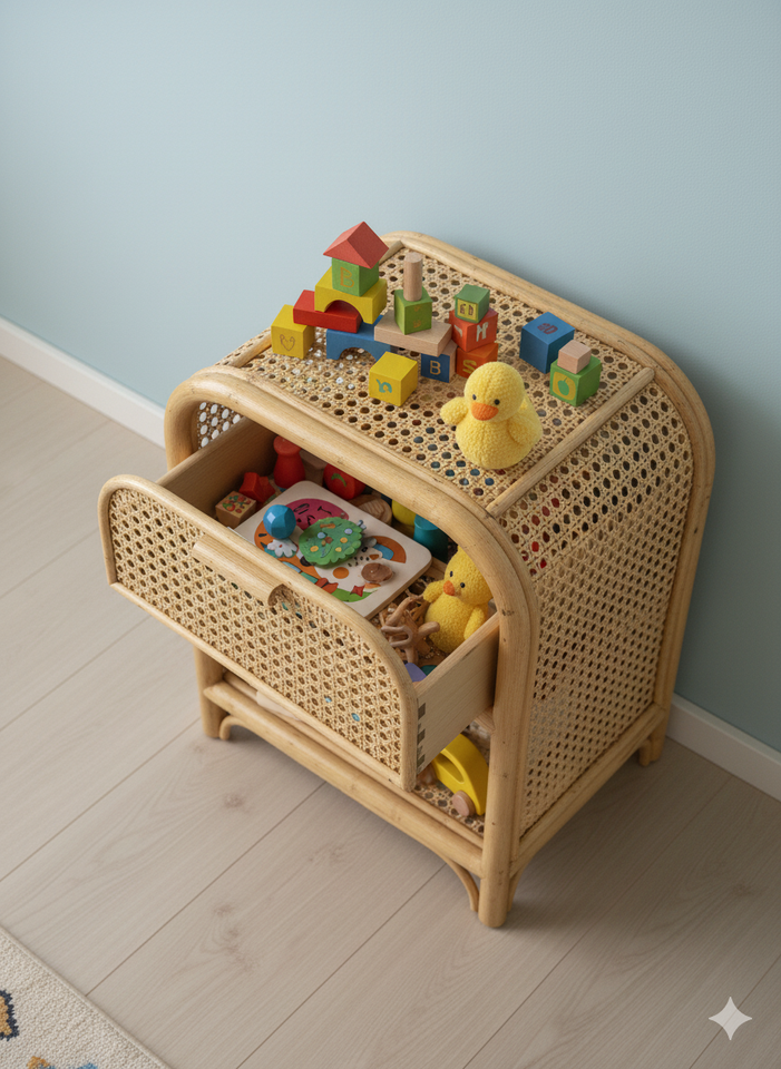 Gabinete de mimbre hecho a mano moderno para dormitorio de bebé y Niño | Muebles de almacenamiento tejidos ecológicos seguros