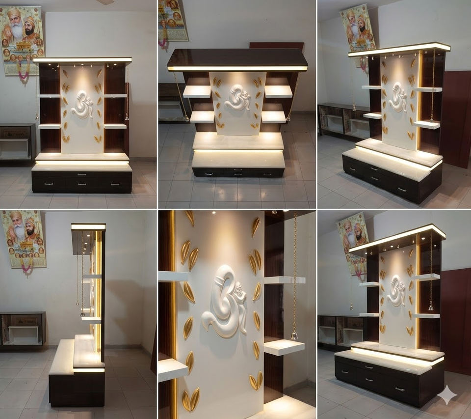 Templo Moderno de Madera de Teca Hecho a Mano para Sala de Pooja con Tamaño Personalizado y Envío Marítimo