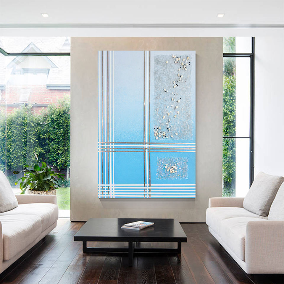 Pintura Moderna Hecha a Mano con Textura de Arena Marina en 3D sobre Lienzo, Arte de Pared Físico sin Marco, Pintura Decorativa de Alta Calidad