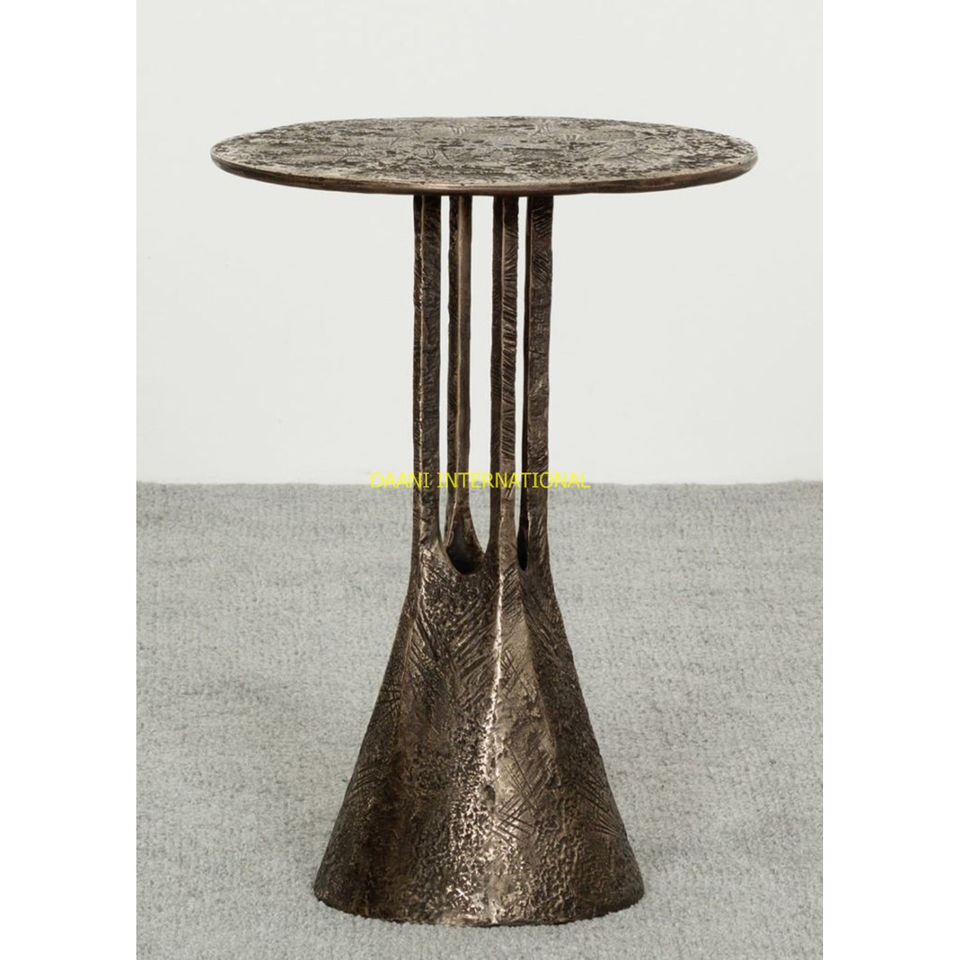 Mesa auxiliar moderna de aluminio hecha a mano con base de cono texturizado y mesa de centro artística superior redonda para sala de estar dormitorio Hotel
