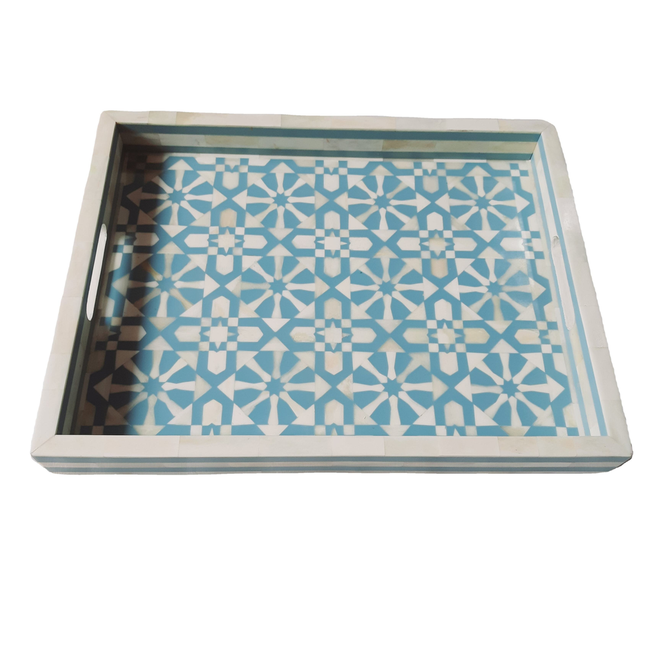 Bandeja Moderna Hecha a Mano con Incrustaciones de Hueso, Diseño Geométrico, Tamaño Grande, Multifuncional, Decorativa para Servir, Uso en el Hogar y Jardín