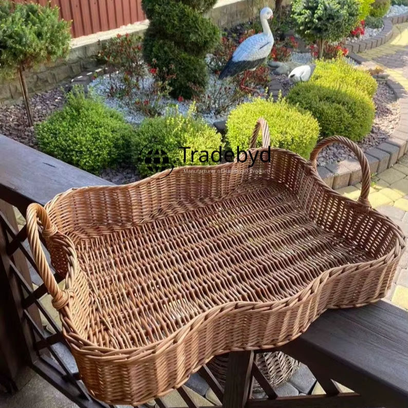 Bandeja de Almacenamiento Moderna Hecha a Mano de Ratán Natural, Calidad Premium, Organizador de Cocina Elegante y Móvil, Tradebyd