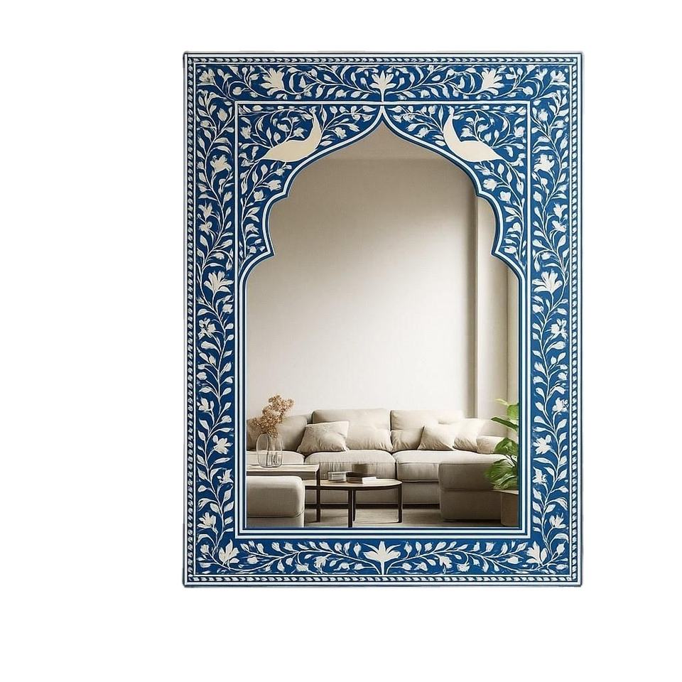 Marco de Espejo Cuadrado Moderno Hecho a Mano con Incrustaciones de Hueso Plateado, Tamaño Personalizado, para Hogar, Hotel, Restaurante, Pared
