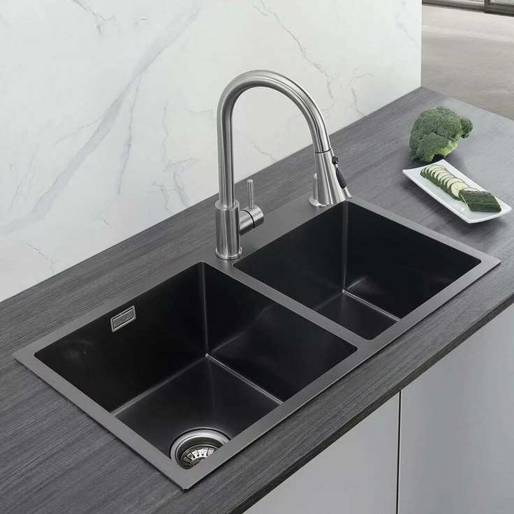 Fregadero de cocina todo en uno de 33x19 pulgadas Gunmetal Black Undermount Acero inoxidable calibre 18 con doble tazón y grifo