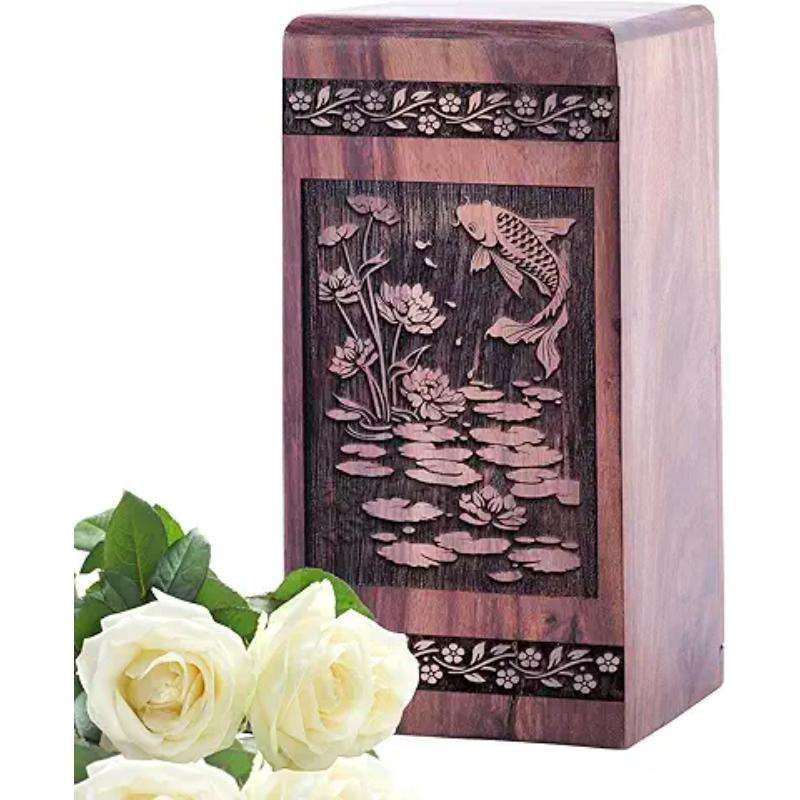 Urnas de cremación de madera hechas a mano modernas, urnas decorativas de diseño de peces para entierro funerario para hombres y mujeres a bajo precio