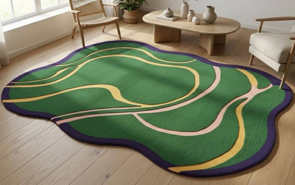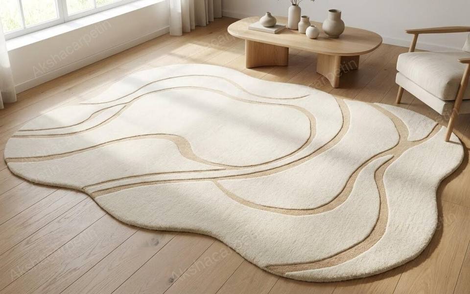 Alfombra Moderna Hecha a Mano con Mechones de Lana para Sala de Estar | Fabricación de Alfombras de Lana de Lujo a Medida