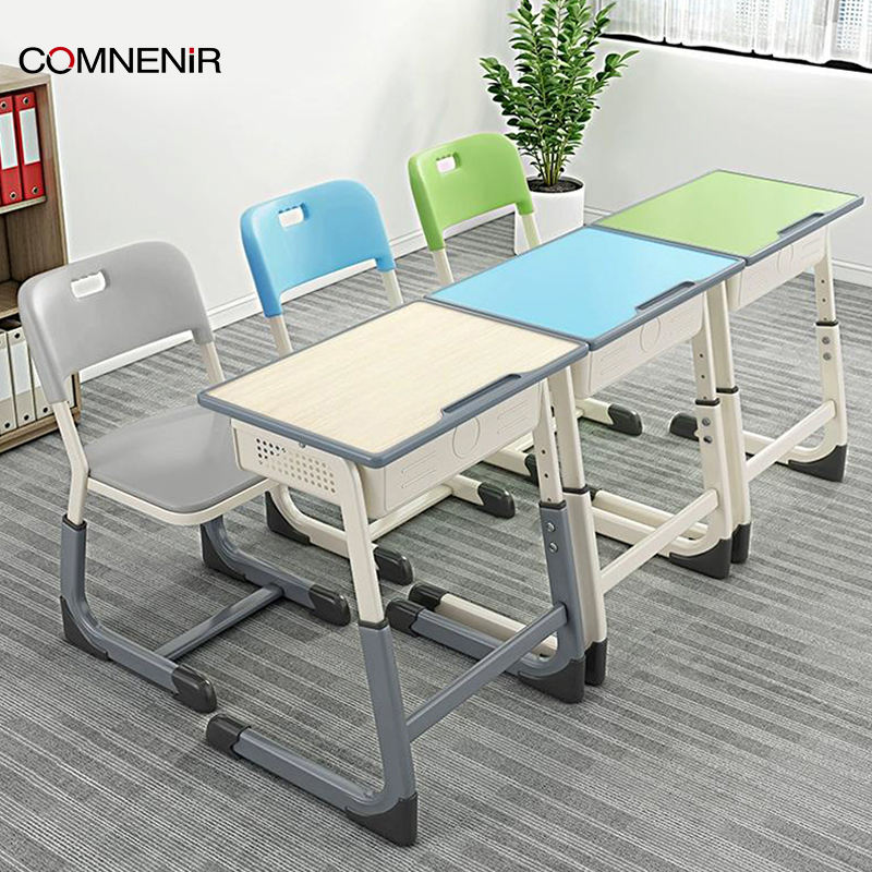 Muebles Escolares Modernos de Escritorio y Silla de Plástico Ajustables en Altura para Estudiantes de Primaria
