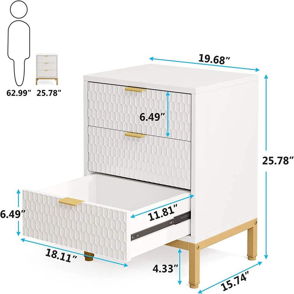 Mesita de Noche Moderna con Múltiples Cajones para Almacenamiento, Elegante Mesita de Noche