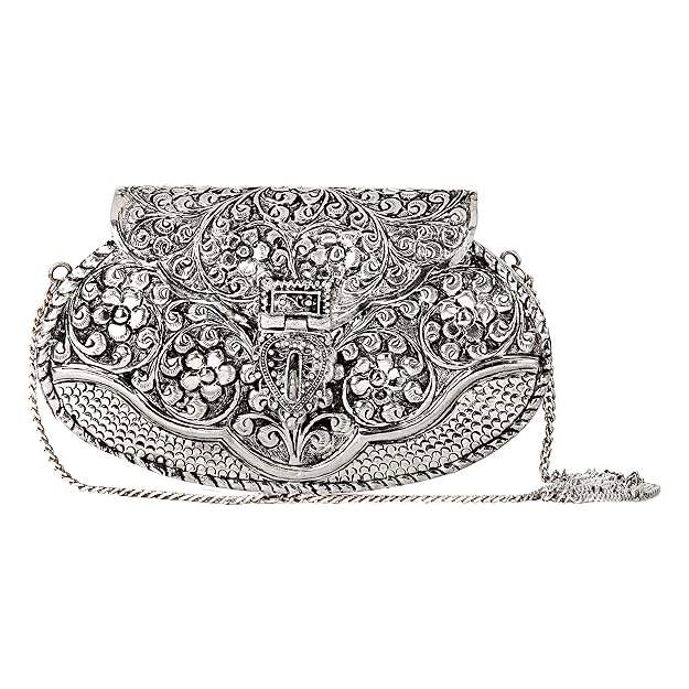 Bolso de Mano Metálico Moderno de Alta Costura con Cadena Desmontable para Eventos Nocturnos, Cierre con Cuentas Metálicas - Precio Bajo por HF CRAFTS