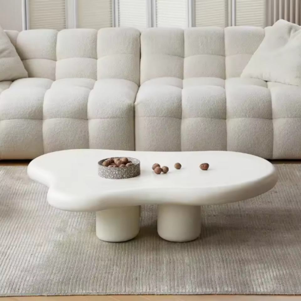 Juego de Mesa de Centro Moderna para el Hogar, Diseño de Mesa de Centro en Forma de Nube Ondulada en Color Blanco Crema para Sala de Estar