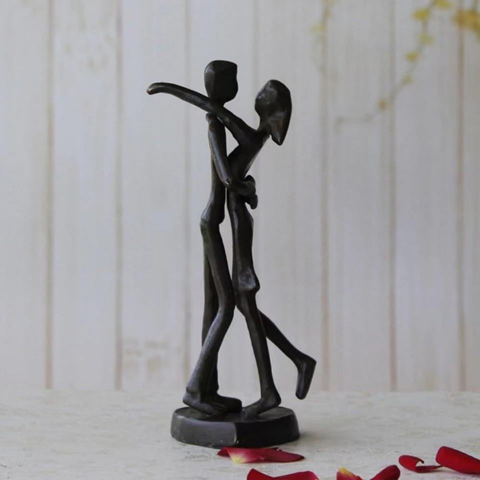 Decoración moderna para el hogar, escultura de pareja romántica, adorno de Metal fundido de aluminio negro, precio al por mayor