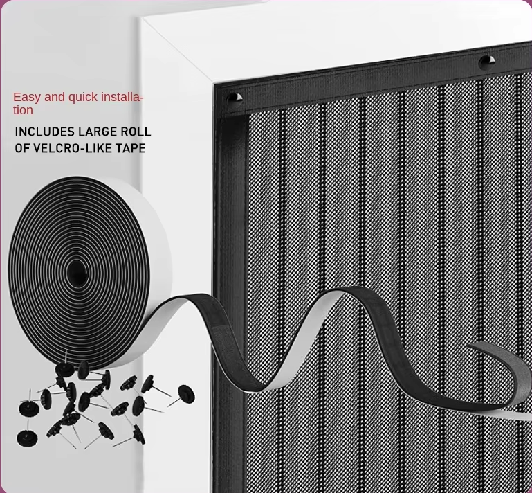 Cortina de puerta de pantalla de ventana de hogar moderna tira magnética antimosquitos de verano para fábrica de poliéster autoadhesivo de Velcro