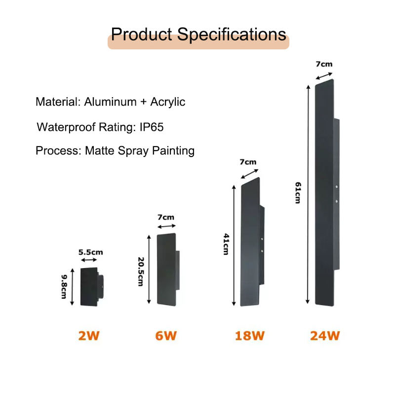 Tira de Luz LED Moderna Impermeable IP65, Rectangular, de Aluminio, para Decoración de Paredes Exteriores, Balcones y Escaleras, Lámparas de Pared Empotradas Bajas