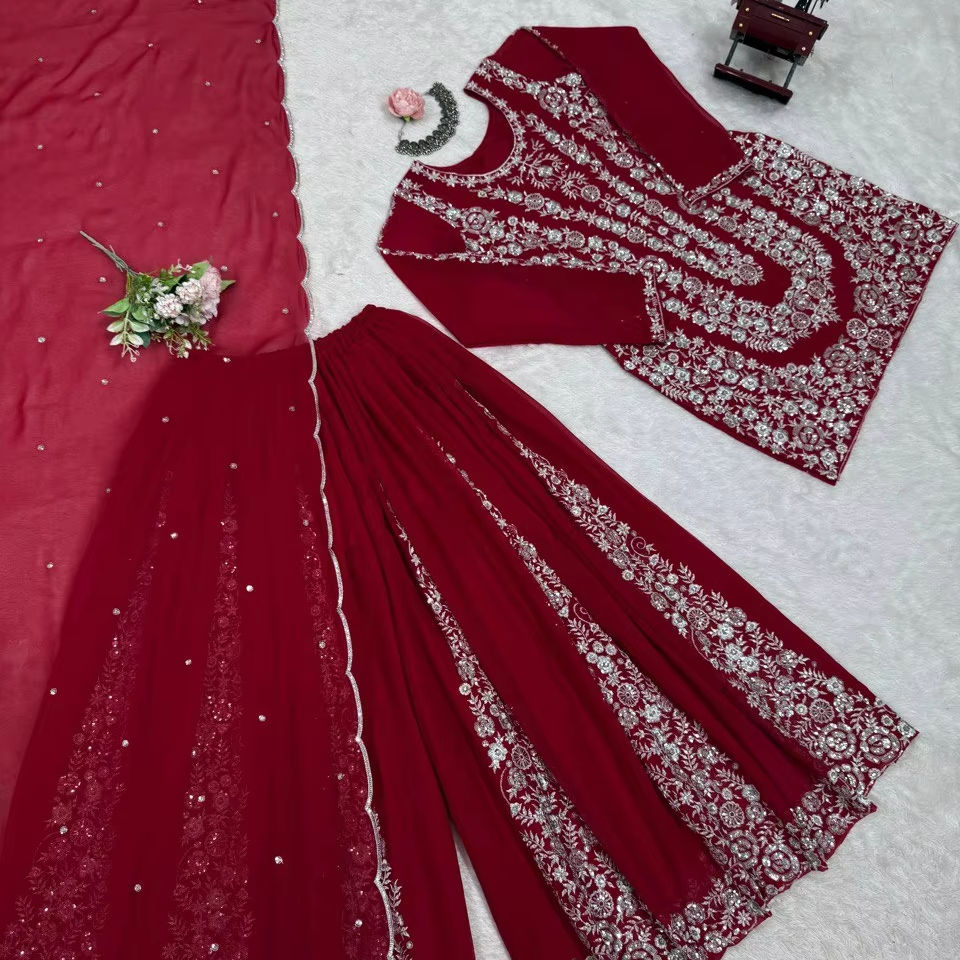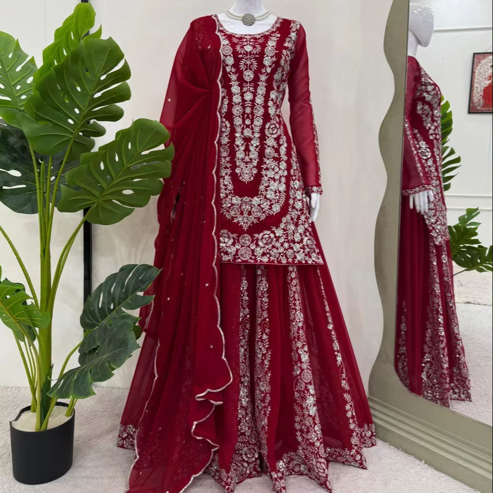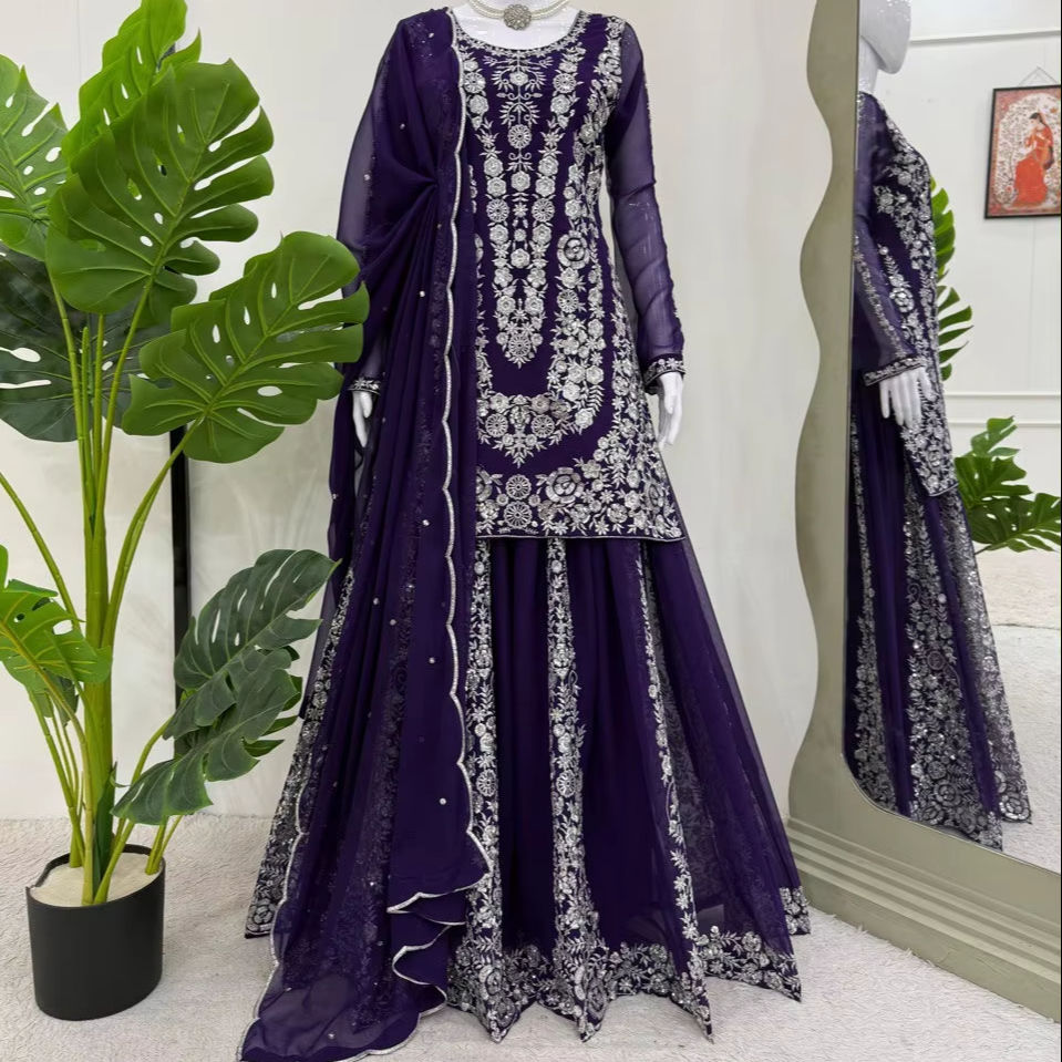 Característica:Juego recto Kurta Sharara & Dupatta