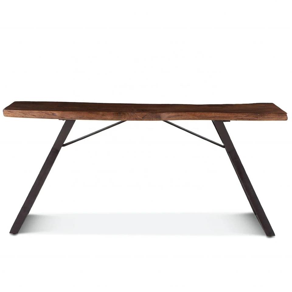 Mesa de consola de loft de estilo industrial moderno, tapa de borde vivo de madera maciza de Acacia con base de hierro, muebles para el hogar para sala de estar y oficina