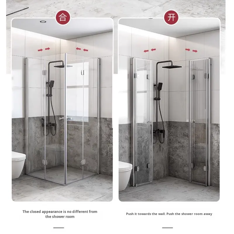 Pantalla de baño de separación húmeda seca Rectangular integrada moderna, 6mm, ducha plegable, puerta corredera, Partición de baño para secado húmedo