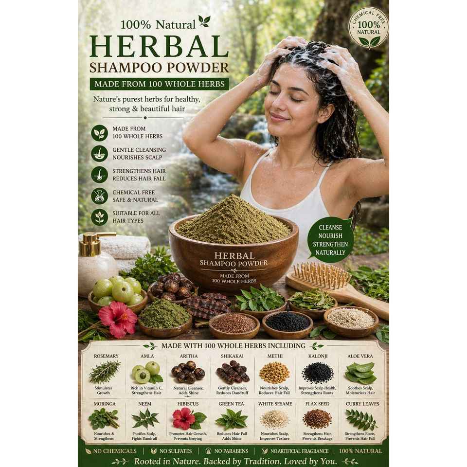 Inovador Champú Natural en Polvo para el Crecimiento del Cabello con Romero, Jabonera, Amla, Shikakai, Sésamo Blanco y Negro, Moringa y Moringa Verde
