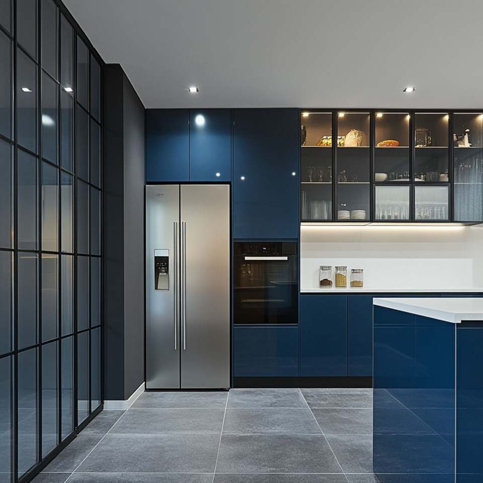 Moderno Isla Cocina Diseños Completo Metal Laminado Brillante Cocina Armarios Proveedor