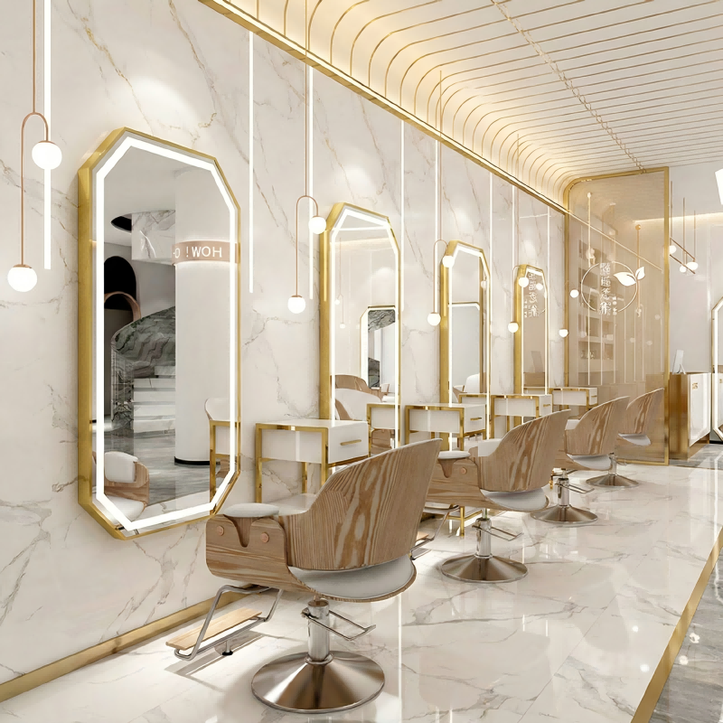 Espejo Octagonal de Aluminio LED Italiano Moderno, Espejo de Vanidad Iluminado de Pared de Cuerpo Entero para Salón de Belleza de Lujo y Decoración del Hogar