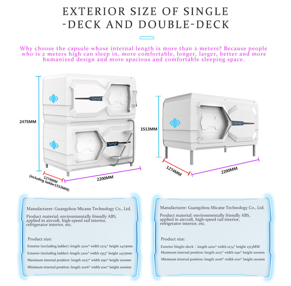 Moderno japonés Hotel Apartamento Loft Sleepbox Camas Cápsula Cama doble Sleep Pod