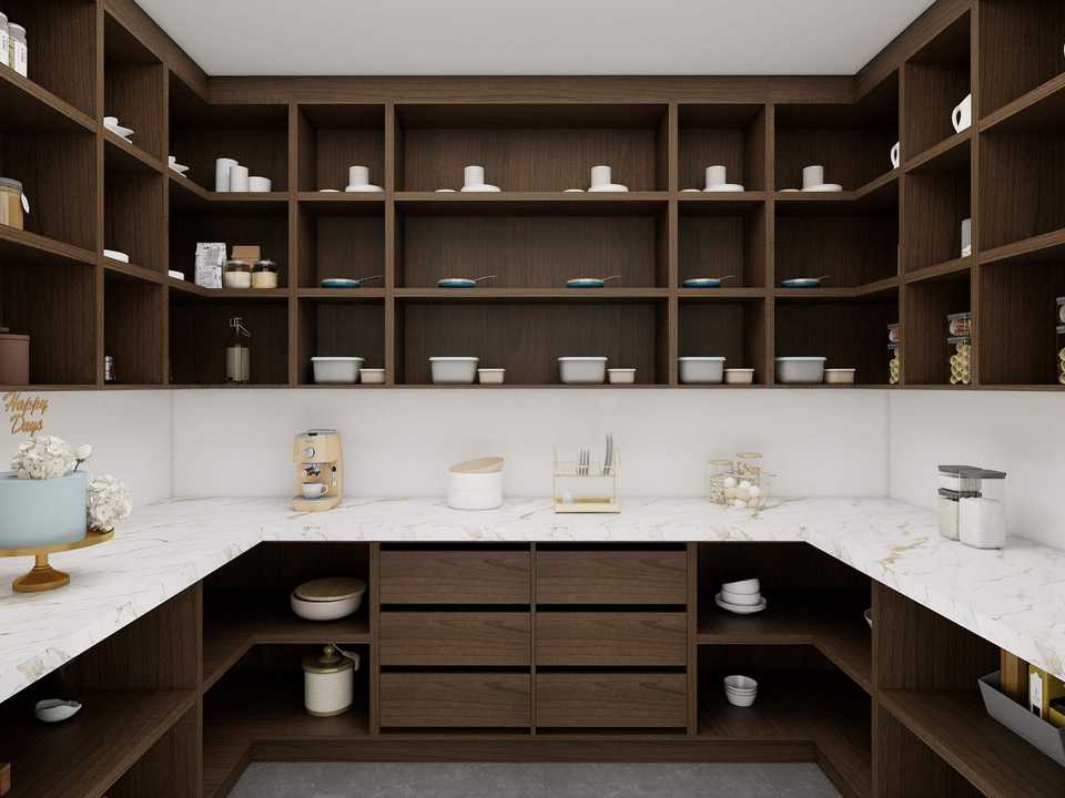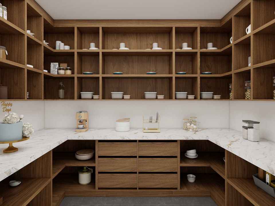 Mueble de Cocina Moderno con Despensa y Encimera de Cuarzo, Gran Almacenamiento para Apartamento