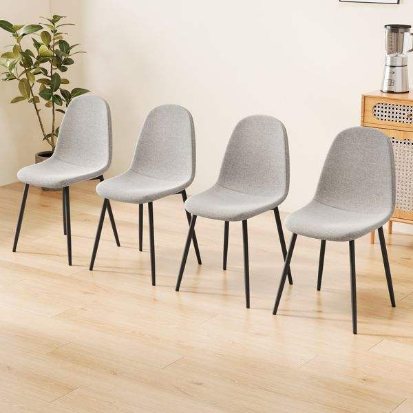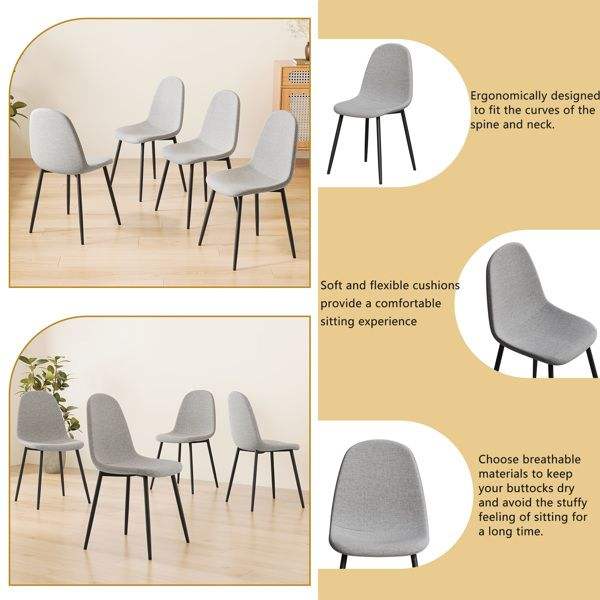 Juego de 4 Sillas de Comedor Modernas con Asientos Acolchados de Lino y Patas de Metal Negro Resistentes, Diseño Beige para Mesa de Comedor