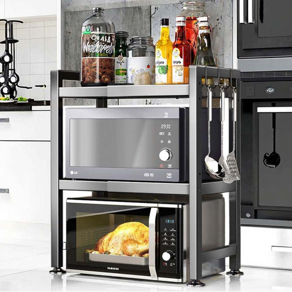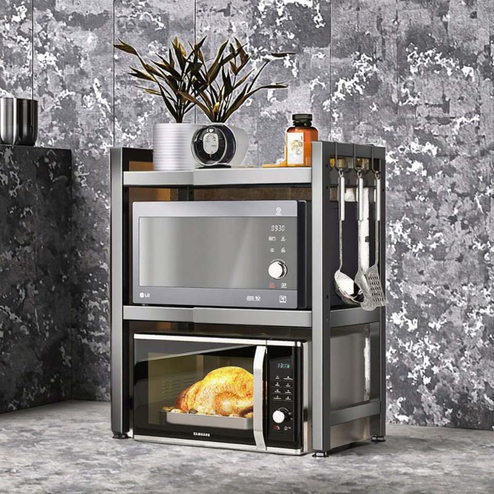 Estante Moderno para Horno de Microondas, Tipo Doble Independiente, Multifuncional, Plegable, de Metal, para el Hogar, de Fácil Instalación