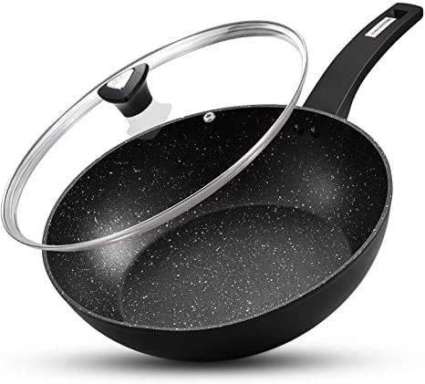 Sartén Profunda Antiadherente Moderna para Cocina, con Tapa, Apta para Inducción, Cuerpo de Aluminio de Alta Resistencia